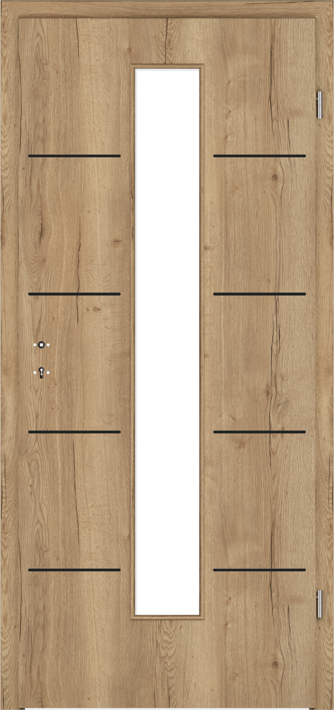 Designtür Corona C830 - LA4M / CePal Authentic Risseiche | Links | 735 mm | Klarglas ESG | 1985 mm | Rundkante (R) | Edelstahloptik | Vollspanmittellage (ca. 20,0 kg/m²) | Buntbart | C830-LA4M-CARE.80