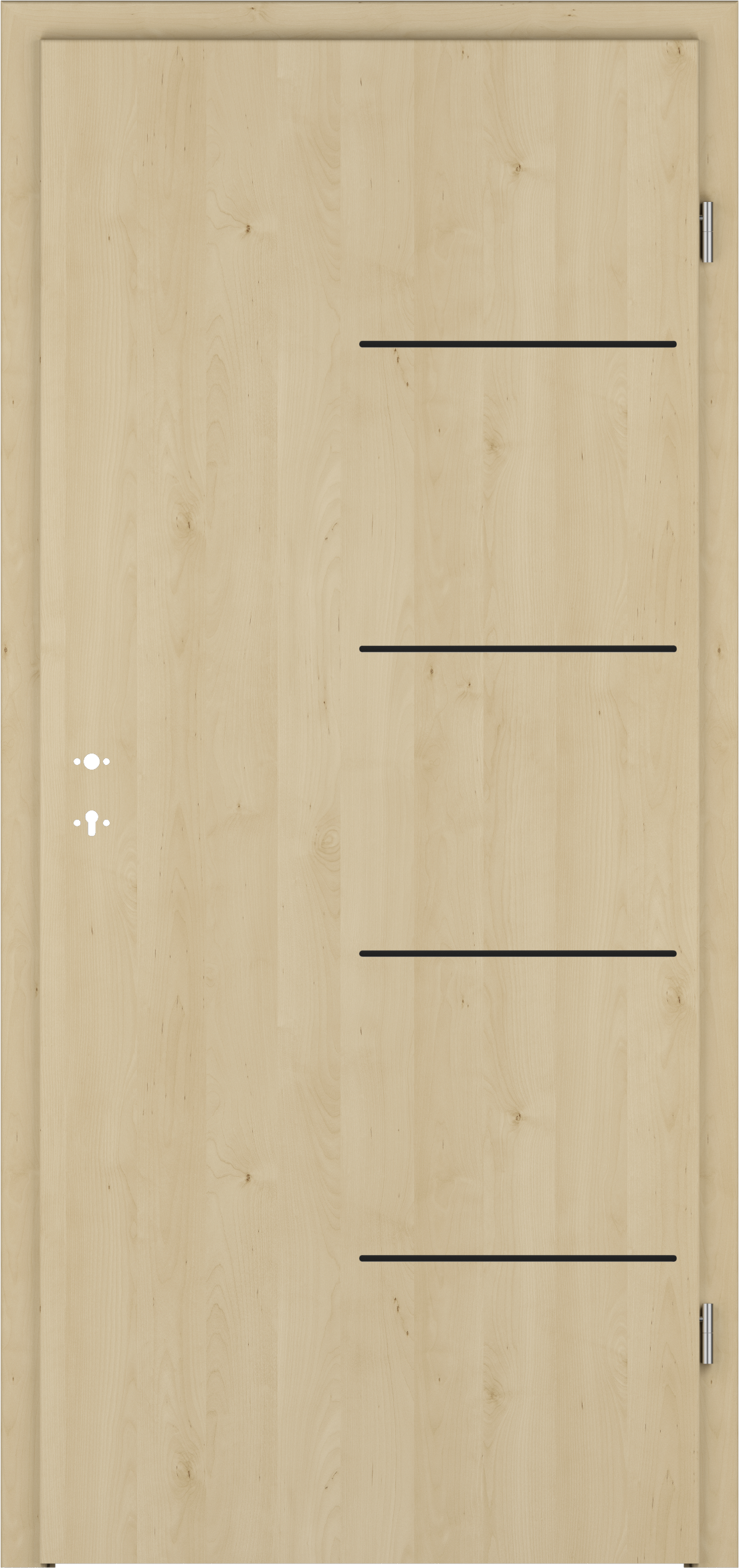 Designtür Corona C834 / CePal natura Ahorn | Links | 735 mm | 1985 mm | Rundkante (R) | Edelstahloptik | Röhrenspanmittellage (ca.15,5 kg/m²) | Buntbart | C834-CNA.8
