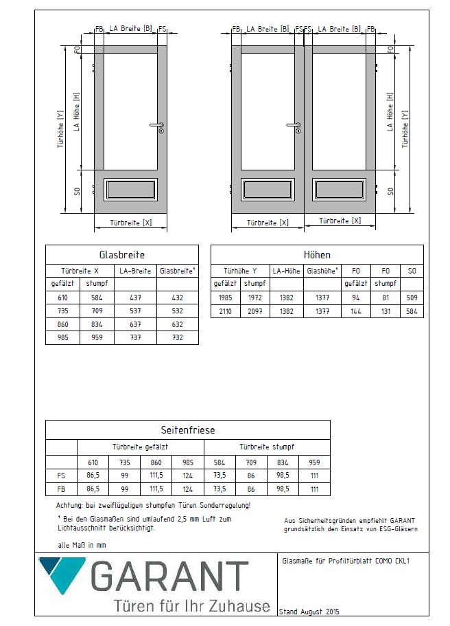Profiltür Como CKL1 / RAL 9016 | Links | 985 mm | Klarglas ESG | 1985 mm | kleine Rundkante (KR) | Vollspanmittellage (ca. 20,0 kg/m²) | Buntbart | WL-CKL1-9016M.169