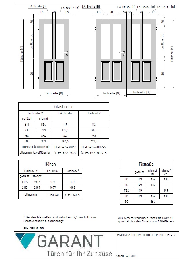 Produktinformationen "Profiltür Parma PFL4/2 / RAL 9016"