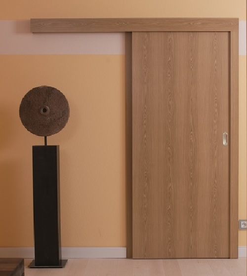 gibt es platzsparende Schiebetüren, die vor der Wand entlanglaufen.