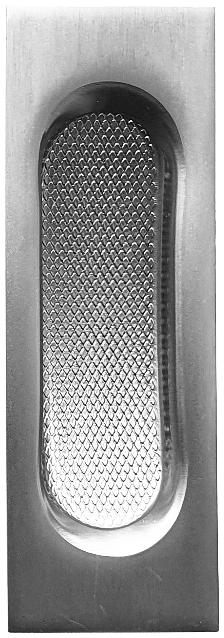 Standardmäßig ist eine ovale edelstahlfarbene Griffmuschel montiert.